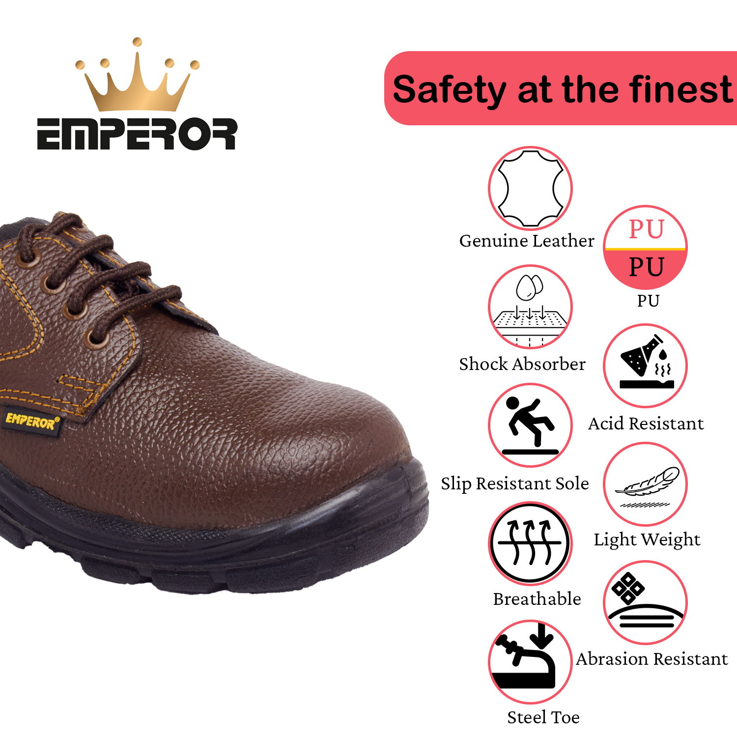 Crafted for durability and all-day comfort, these Brown Safety Shoes are designed to provide reliable protection in demanding work environments while maintaining a stylish and professional look. Made with a sturdy build and a smooth finish, they are suitable for industrial use as well as everyday workwear. Available in a wide range of sizes, you can find the perfect fit with options in Euro, US, and UK sizing to ensure maximum comfort and support throughout the day.