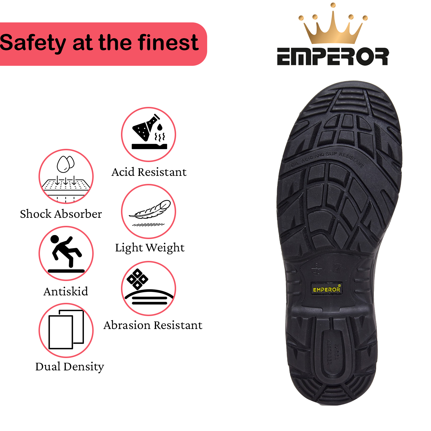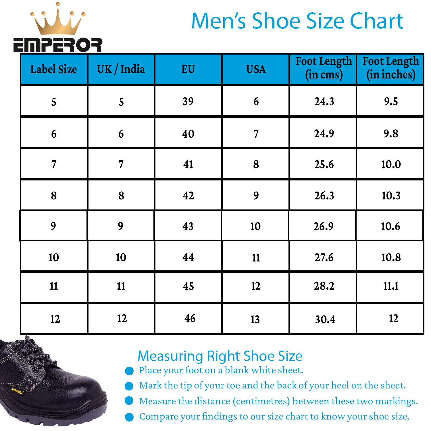 Czar Safety Shoes are designed to deliver unmatched protection, durability, and comfort for long working hours in demanding environments. Built with a sleek yet sturdy finish, these shoes combine modern style with industrial strength, making them suitable for a wide range of industries and workplaces. Available in multiple size options across international standards—Euro, US, and UK—Czar Safety Shoes ensure a perfect fit for every professional, offering reliable performance without compromising on comfort or safety.